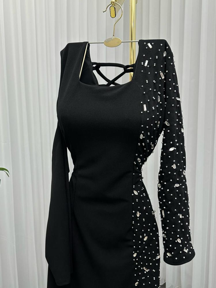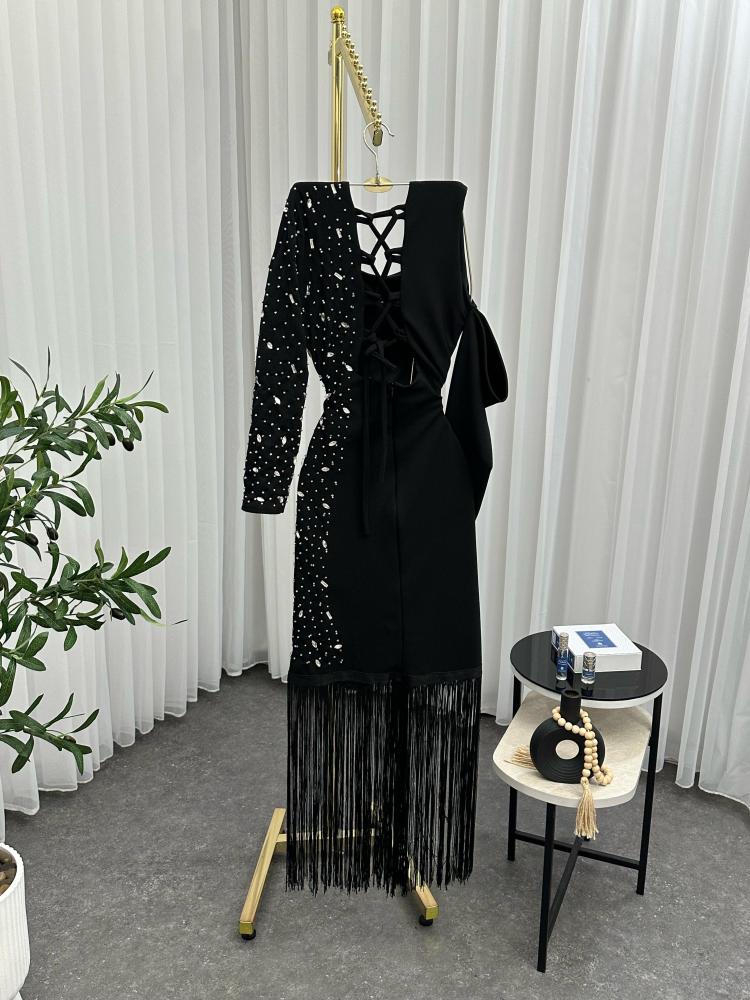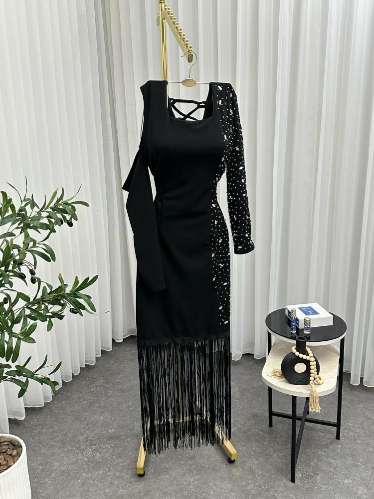 كريب مع هدب اسفل + تطريز جنب يدوي